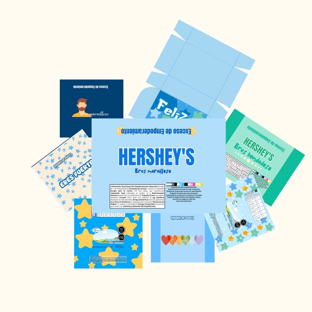 30 Diseños de Empaques Variados: Una completa colección de plantillas que incluye envolturas para Hershey's, tarjeteros y más, todos con mensajes positivos y de afirmación.
