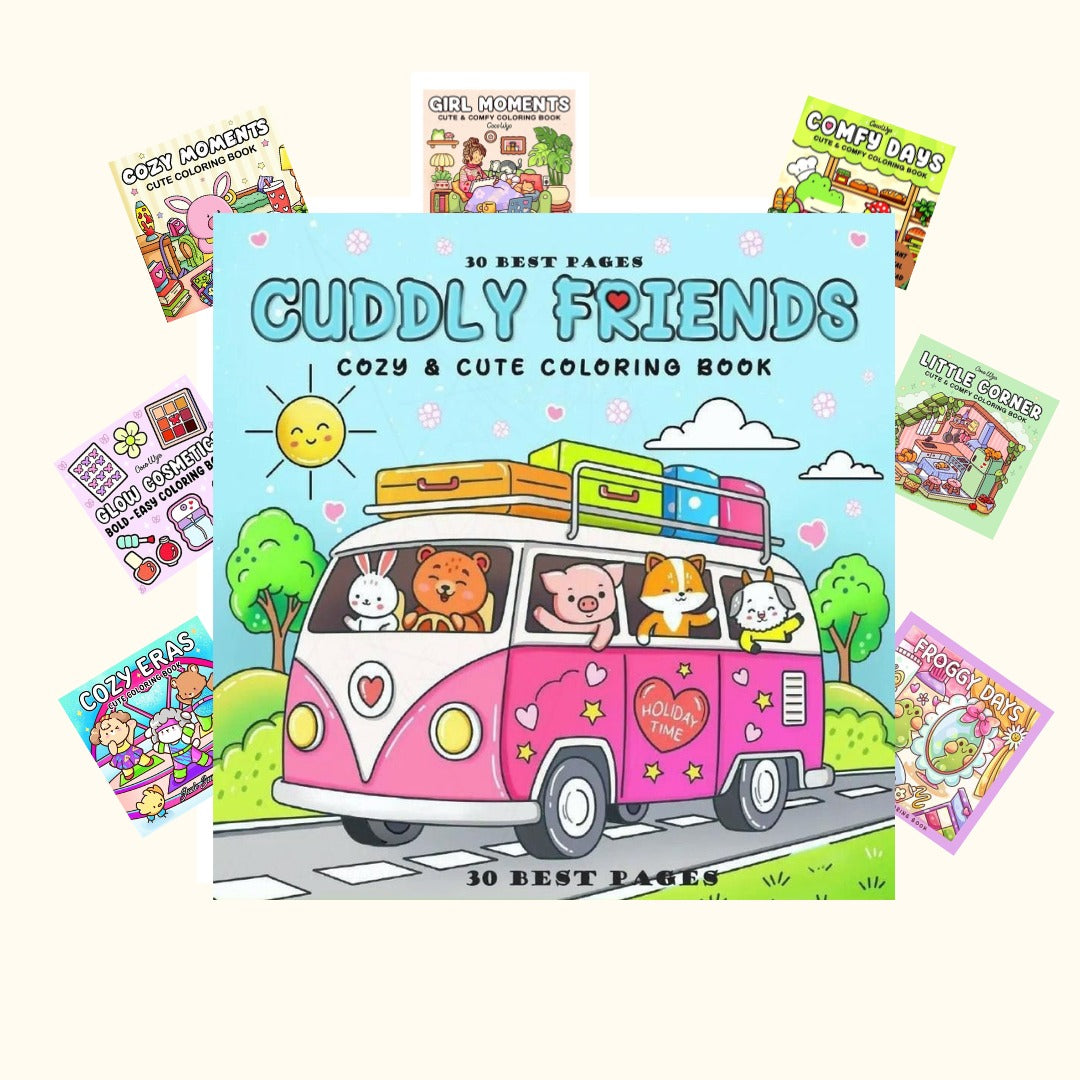 350+ Diseños para Colorear: Una gran colección de páginas con estilos kawaii y temáticas variadas (animales, objetos, escenarios “cozy” y más).